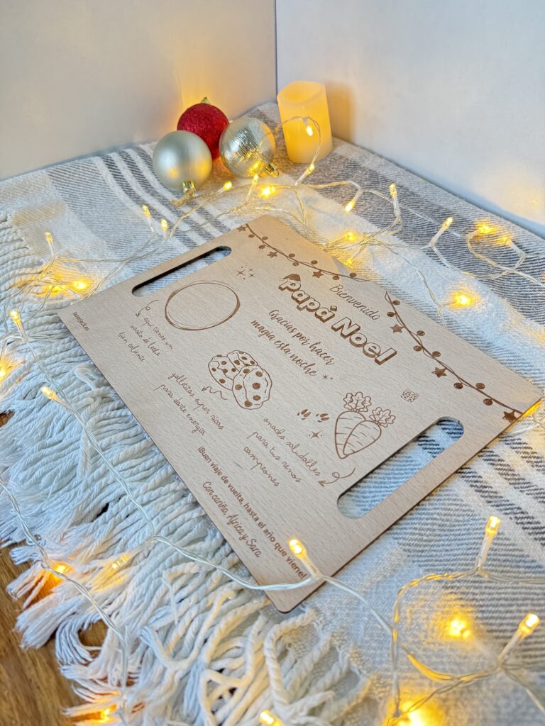 La Navidad es sinónimo de ilusión, magia y tradiciones familiares. Uno de los momentos más esperados por los niños es dejar su pequeño detalle para Papá Noel 🎅 y, días después, para los Reyes Magos 👑. Para hacer ese ritual aún más especial, presentamos esta bandeja de madera reversible, diseñada con cariño y grabada con preciosos detalles que llenarán tu hogar de espíritu navideño.